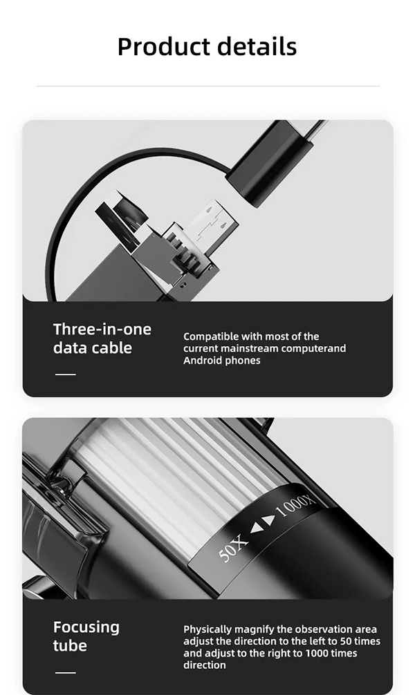 • Portable and Convenient :This USB portable electron microscope is perfect for on-the-go use, making it easy to repair mobile phones or soldering LEDs.