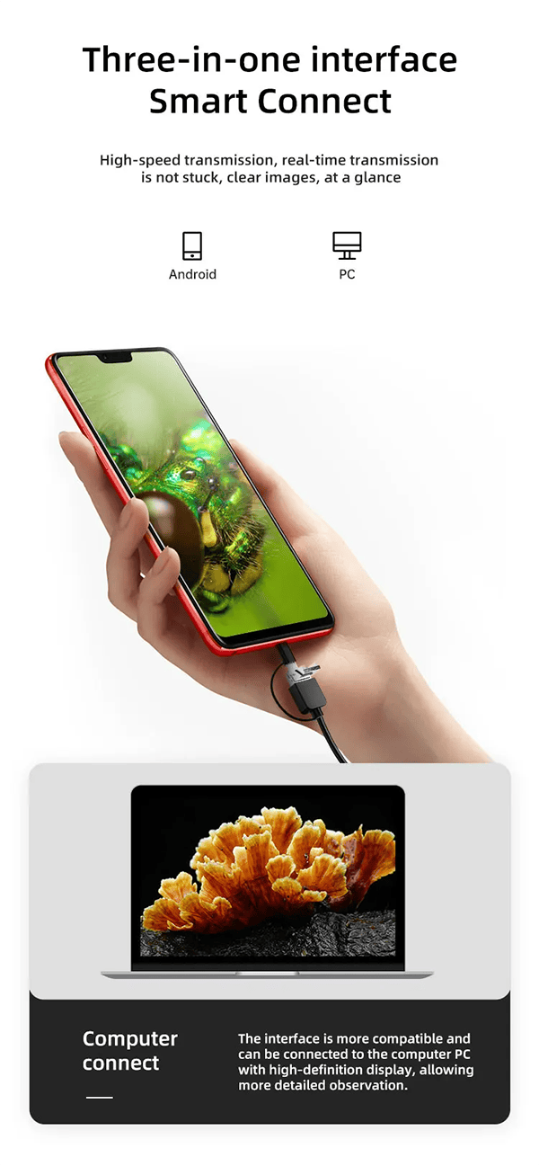 • Portable Design :The C type USB portable design makes it easy to take this digital microscope camera with you wherever you go.