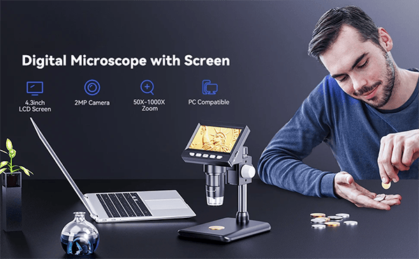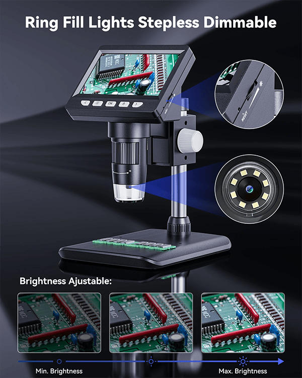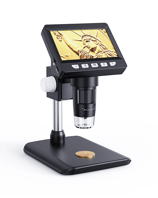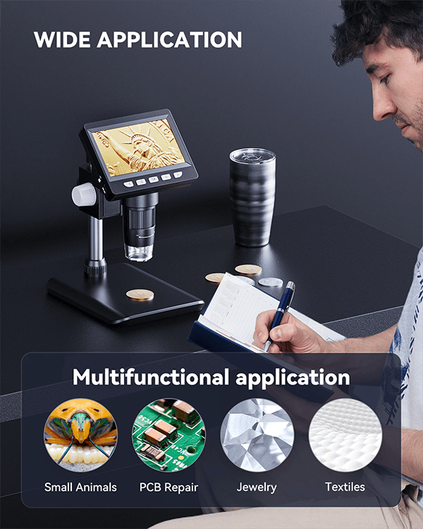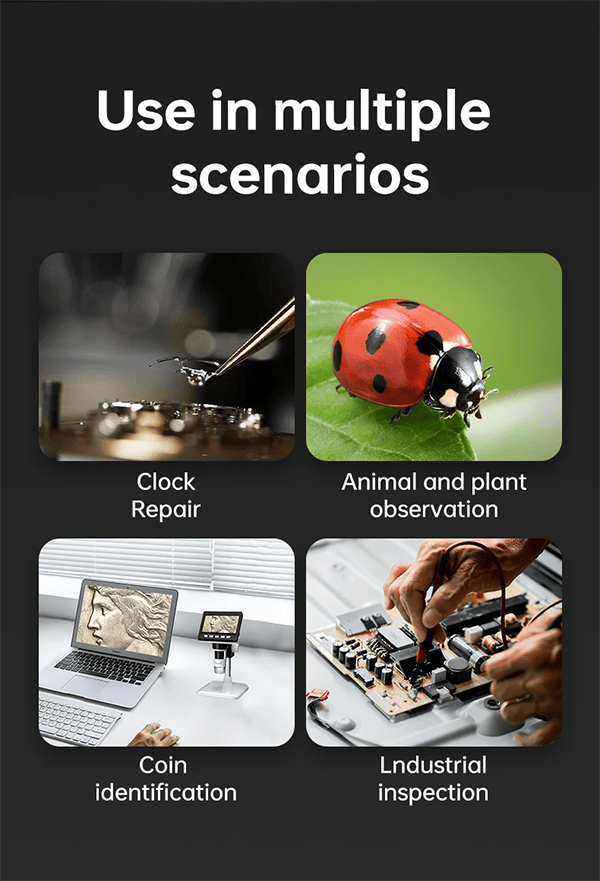 5.【USER-FRIENDLY】- Easy to assemble, focus and view tiny details. Versatile LCD digital microscope for inspecting coins, circuit boards, plants, inserts, jewelry, stamps, and more. An ideal learning tool for adults, scientifically minded students and children.