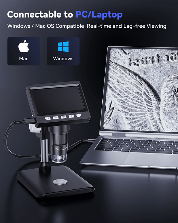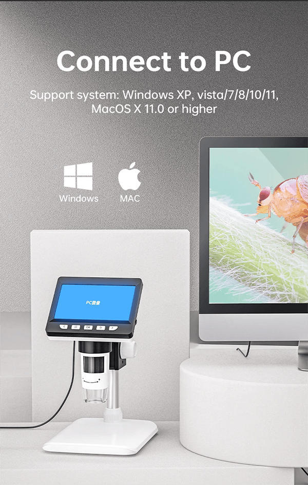 3.【PC View】- You can also connect the microscope to Windows PC’s usb port and get a larger field of view and clearer images. It is compatible with Windows XP Vista 7 8 10 11 system computers and laptops .