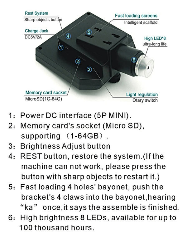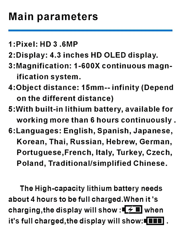 6: With built-in lithium battery, Continuous working for 6 hours .