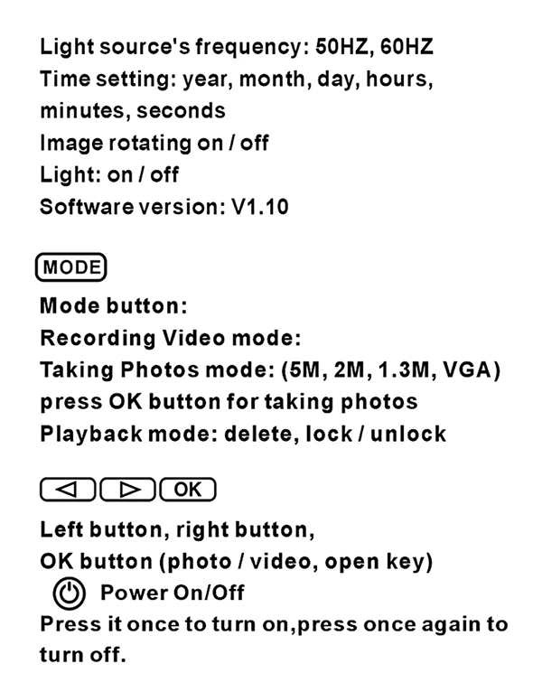 9. Automatic turn off the LCD : off, 1,3,5 minutes