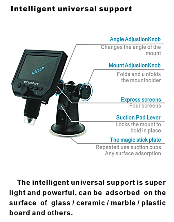 The intelligent universal support is super light and powerful, can be adsorbed on the surface of glass/ceramic/marble/plastic board and others.