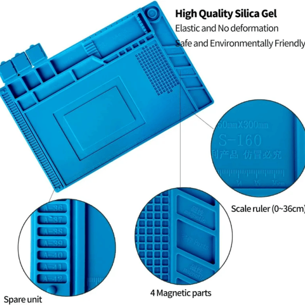 S-170 48x32cm Magnetic Silicone Soldering Mat Anti-Static ESD Heat Resistant Mat 500℃ Magnetic Electronics Repair Mat For Phone Laptop Watch Repair Magnetic Screw Pad
